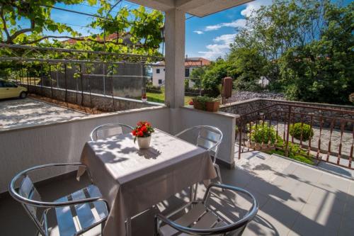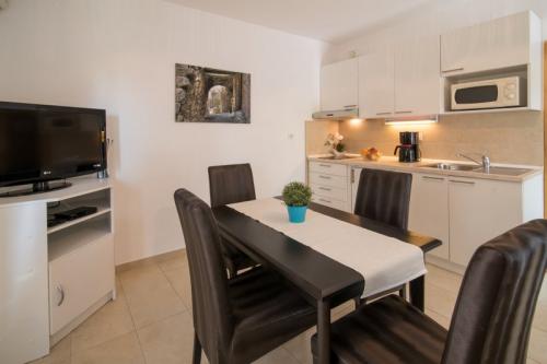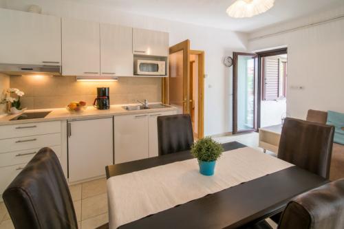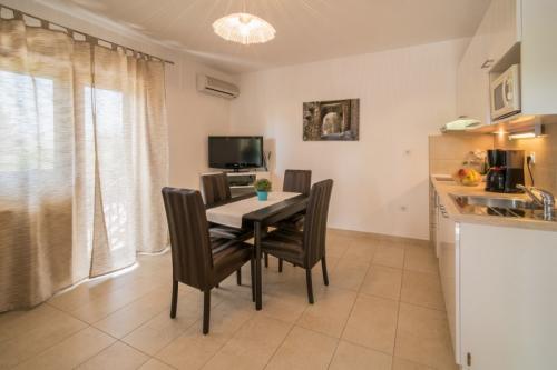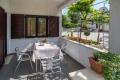 Eine etwa 40 m2 grosse 3-Sterne-Ferienwohnung, 2+3, befindet sich im Erdgeschoss unseres Familienhauses, die Flaeche der ueberdachten Terrase betraegt 8 m2. Sie hat ein Schlafzimmer, ausgestattet mit einem Ehebett, 180x200cm, und mit einem Zusatzbett. Im Badezimmer befinden sich auch die Toilette, eine Duschkabine und Handtuecher. Kueche, eingerichtet, sowie Ess- und Wohnzimmer bilden eine Einheit. Eine Ausziehkautsch ist zugleich das Zusatzbett fuer 2 Personen. Die Ferienwohnung hat ihren eigenen Parkplatz. Haustiere sind nicht erlaubt.