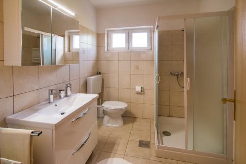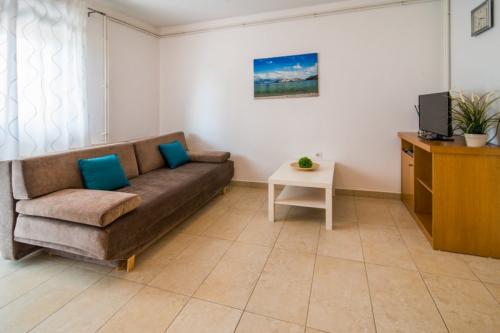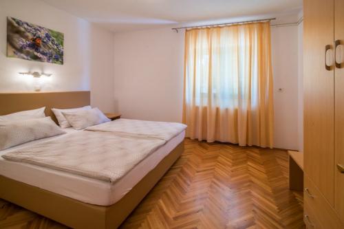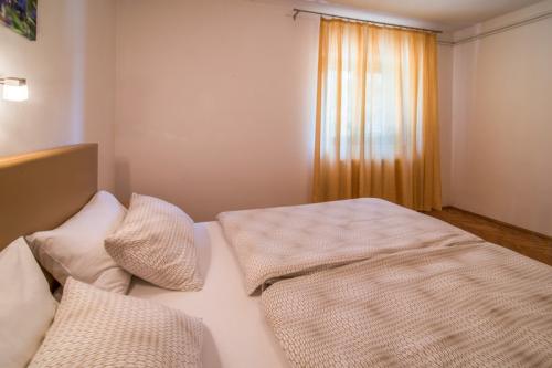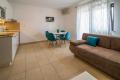Eine etwa 40 m2 grosse 3-Sterne-Ferienwohnung, 2+2, im Erdgeschoss des Familienhauses mit einer Terrasse, deren Flaeche 16 m2 betraegt. Das Schlafzimmer ist mit einem Ehebett-180x200 ausgestattet. Im Badezimmer befinden sich auch die Toilette, eine Duschkabine und Handtuecher. Kueche, eigerichtet, sowie Ess- und Wohnzimmer bilden eine Einheit. Die Ausziehkautsch ist zugleich ein Zusatzbett fuer 2 Personen. Die Ferienohnung verfuegt ueber einen eigenen Parkplatz. Haustiere sind nicht erlaubt.