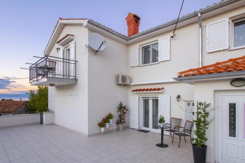 Eine 4-Sterne-Ferienwohnung, 2+2, etwa 200 Meter von unserem Familienhaus und 450 Meter vom Strand entfernt. Die Wohnung befindet sich im zweiten Stock, hat eine Grösse von etwa 45 m2 und einen etwa 5 m2 grossen Balkon mit Meerblick.